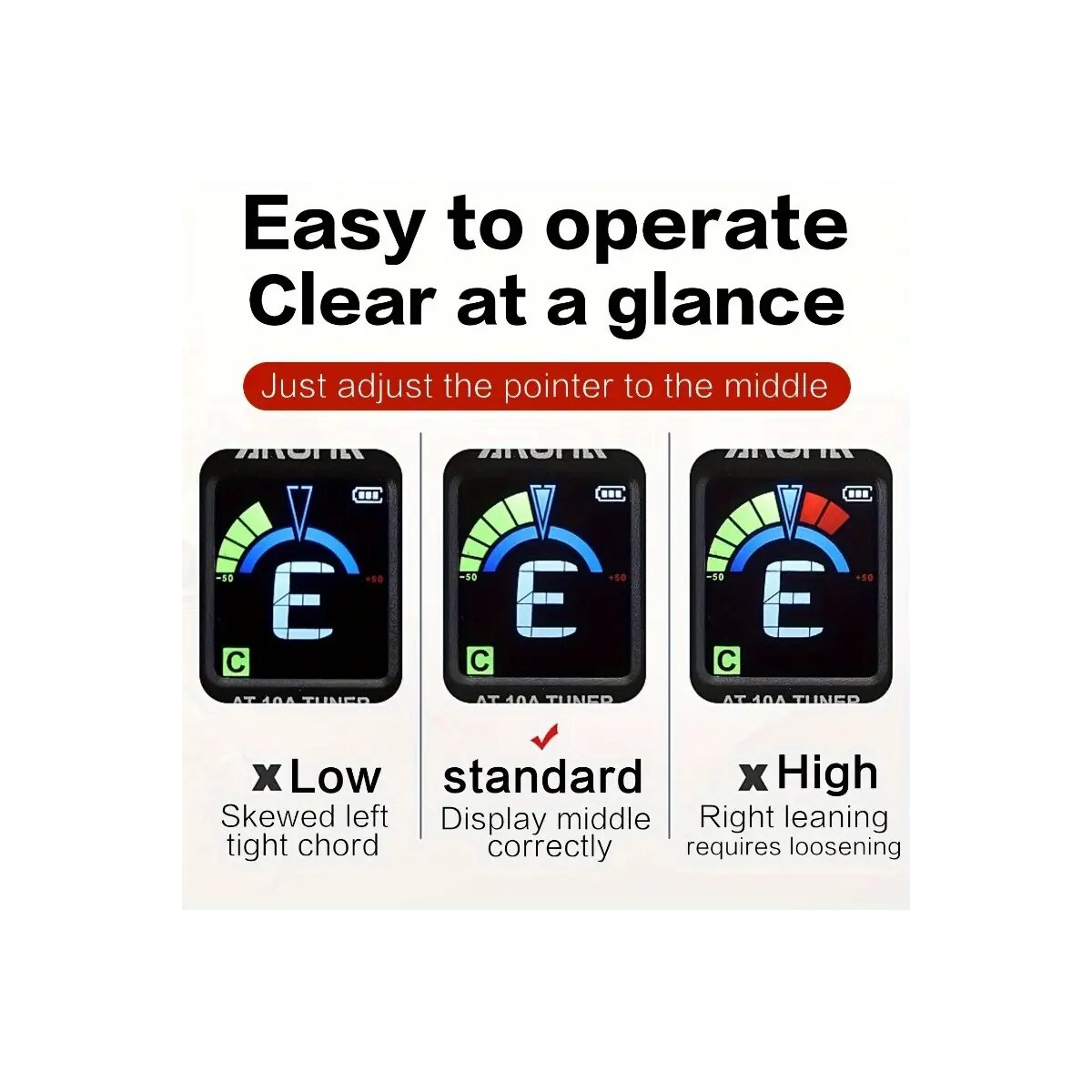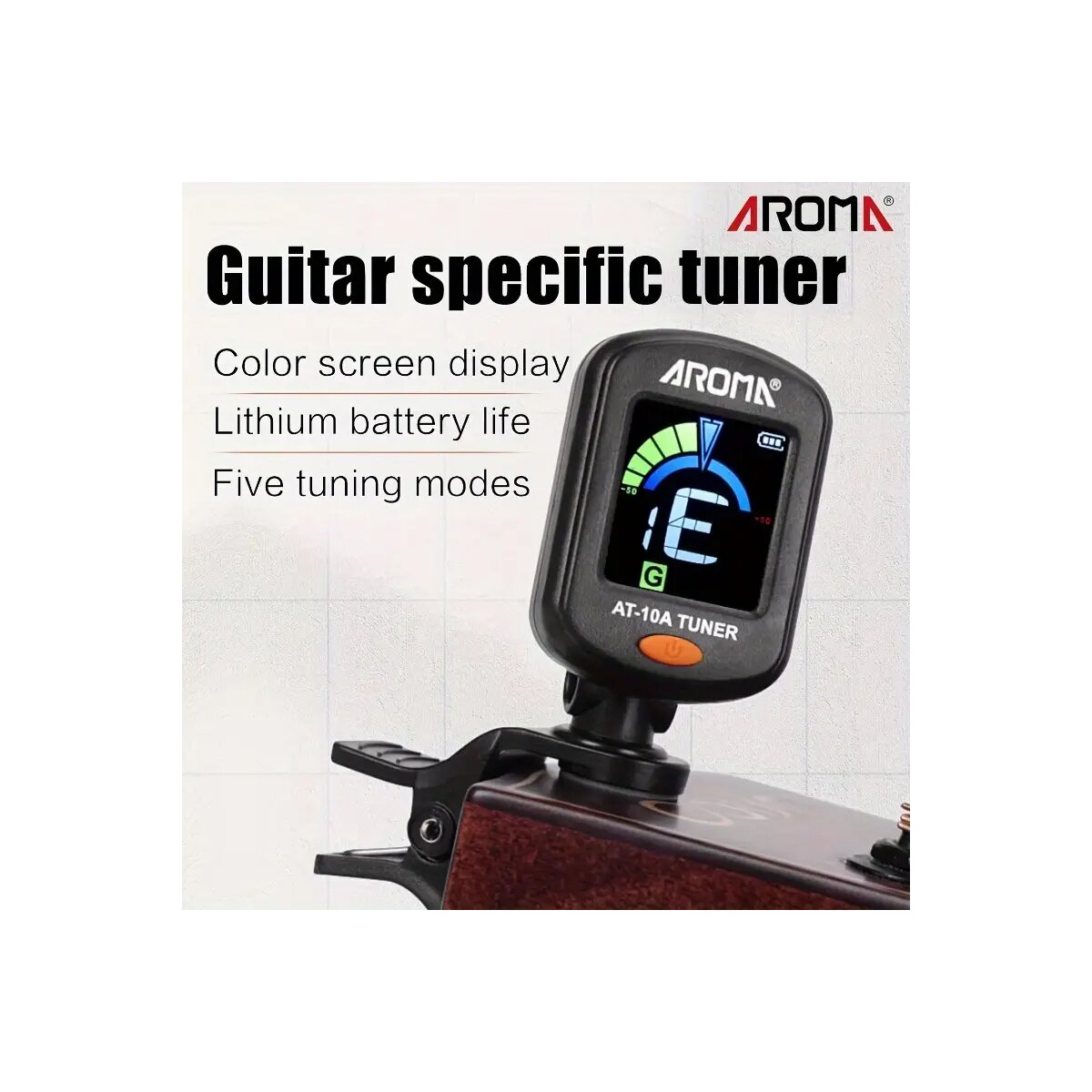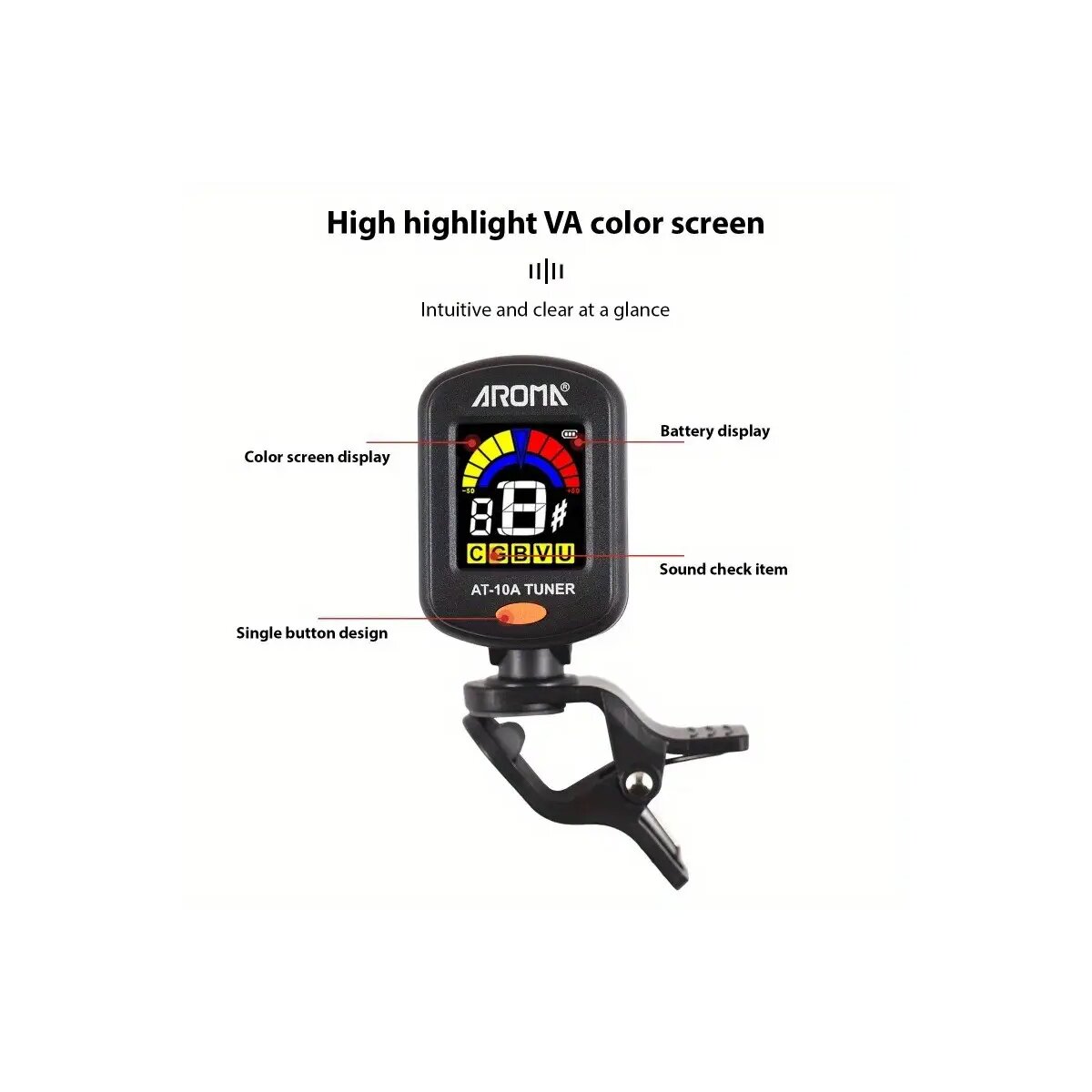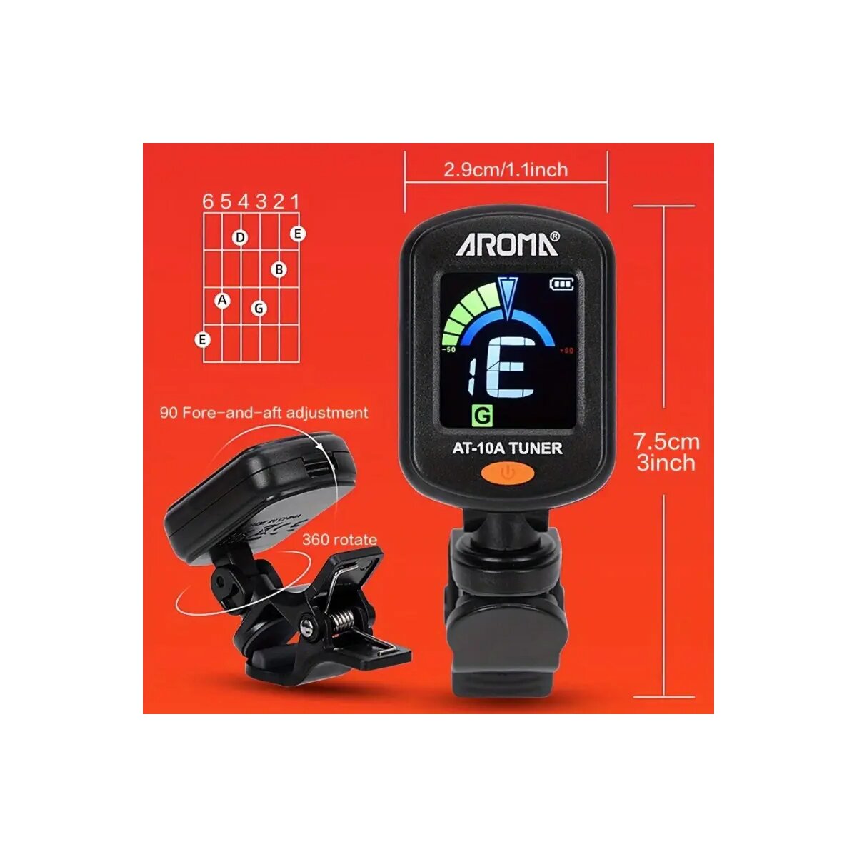 Du willst immer perfekt gestimmt sein, egal ob auf der Bühne, im Proberaum oder zu Hause? Der Aroma AT-10A Cliptuner mit brillantem Farbdisplay macht’s möglich – schnell, präzise und stylisch!