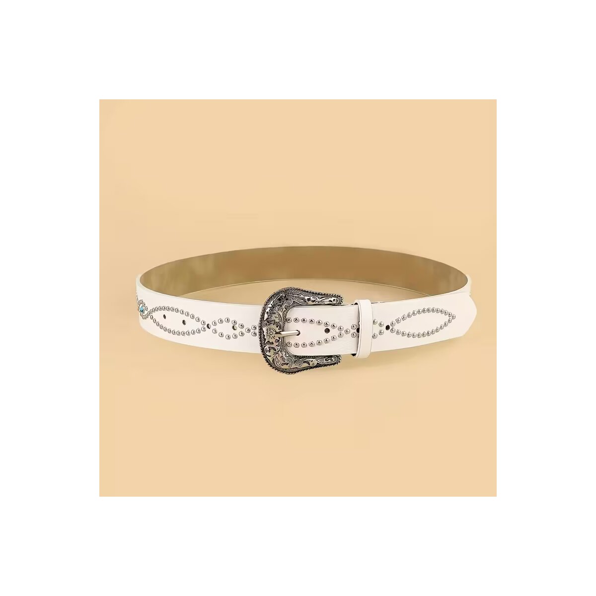Mit massiven Nieten und 18 funkelnden Aquamarin-Steinen ist er mehr als nur Zubehör – er ist deine Bühne an der Hüfte. Ob zu Boots, Jeans oder Kleid: Dieser Gürtel schreit nach Gitarrenriffs, Line Dance und langen Nächten im Scheinwerferlicht.