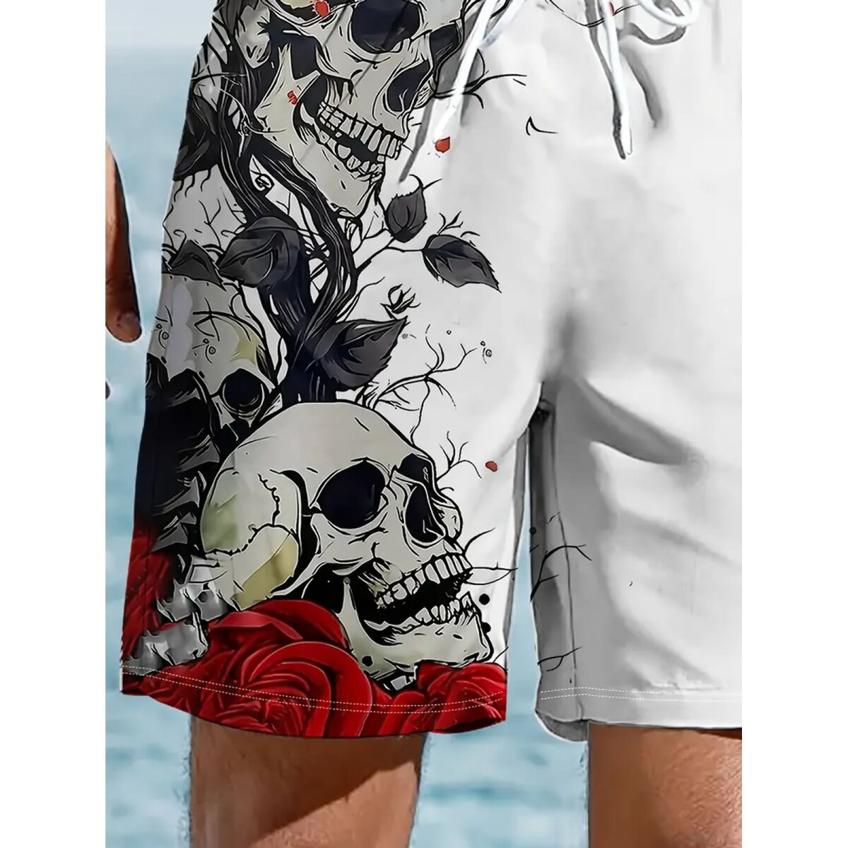 Dann ist unsere weiße Herrenshort mit dem einzigartigen Skull’n Roses Design genau dein Ding!
