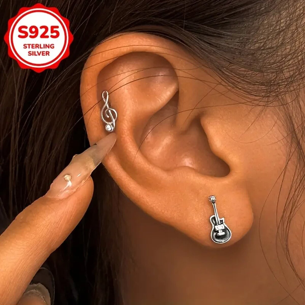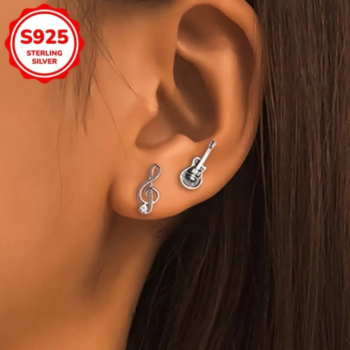 Ob die kleine Bassgitarre oder der elegante Notenschlüssel – beide sind mit einem funkelnden Strassstein verziert und bringen deine Liebe zur Musik stilvoll zum Ausdruck.
