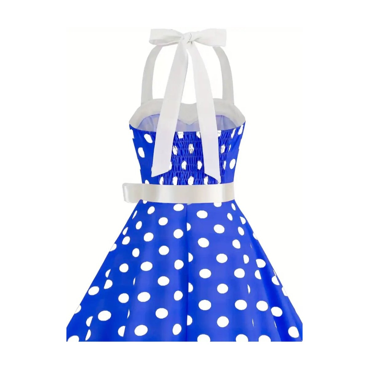 Zum Beispiel trifft Cooles Blau auf weiße Punkte oder Pink auf Weiss oder Schwarz oder Rot oder.... Der freche Halterneck-Style sorgt für echten 50s-Charme – perfekt zum Tanzen, Feiern und Abrocken. Bereit für deinen Auftritt? Dieses Kleid lässt dich zum Star jeder Bühne werden!