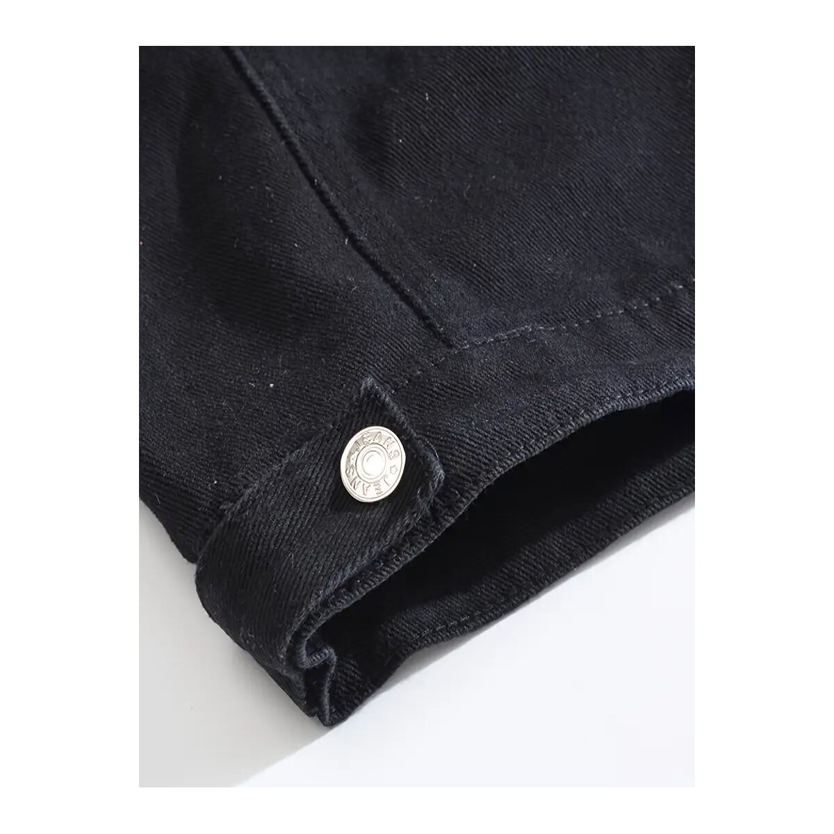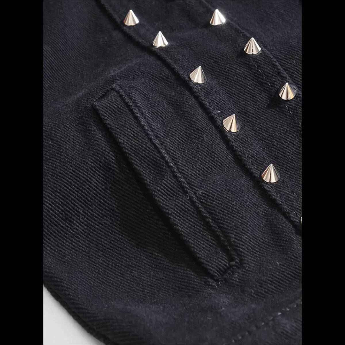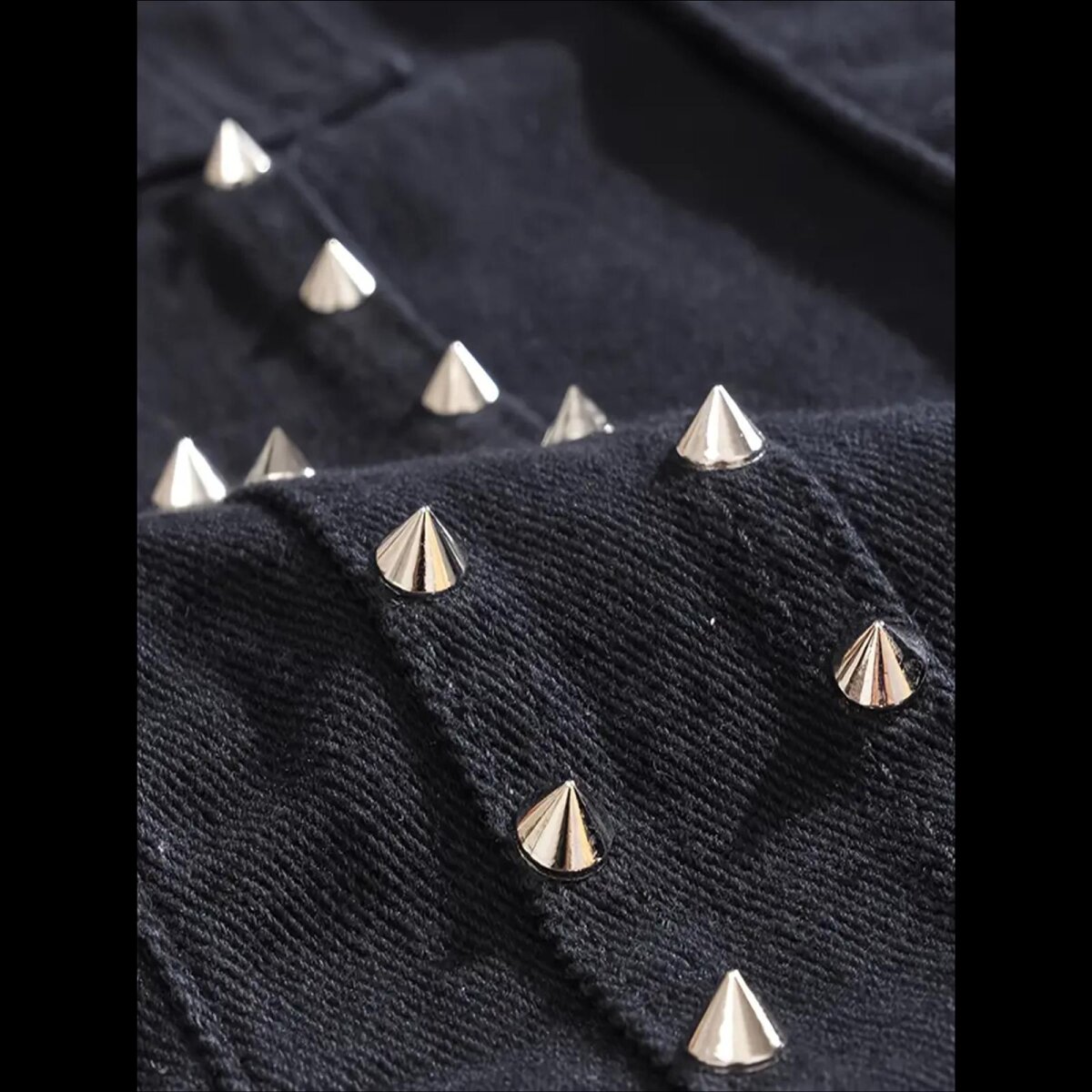 Du lebst für Musik, laute Gitarrenriffs und den ganz großen Auftritt? Dann ist diese Jeansweste wie für dich gemacht! Das tiefschwarze Denim sorgt für den klassischen Rock-Look, während die vielen spitzen Nieten jedem zeigen: Hier kommt ein echter Bühnenheld.