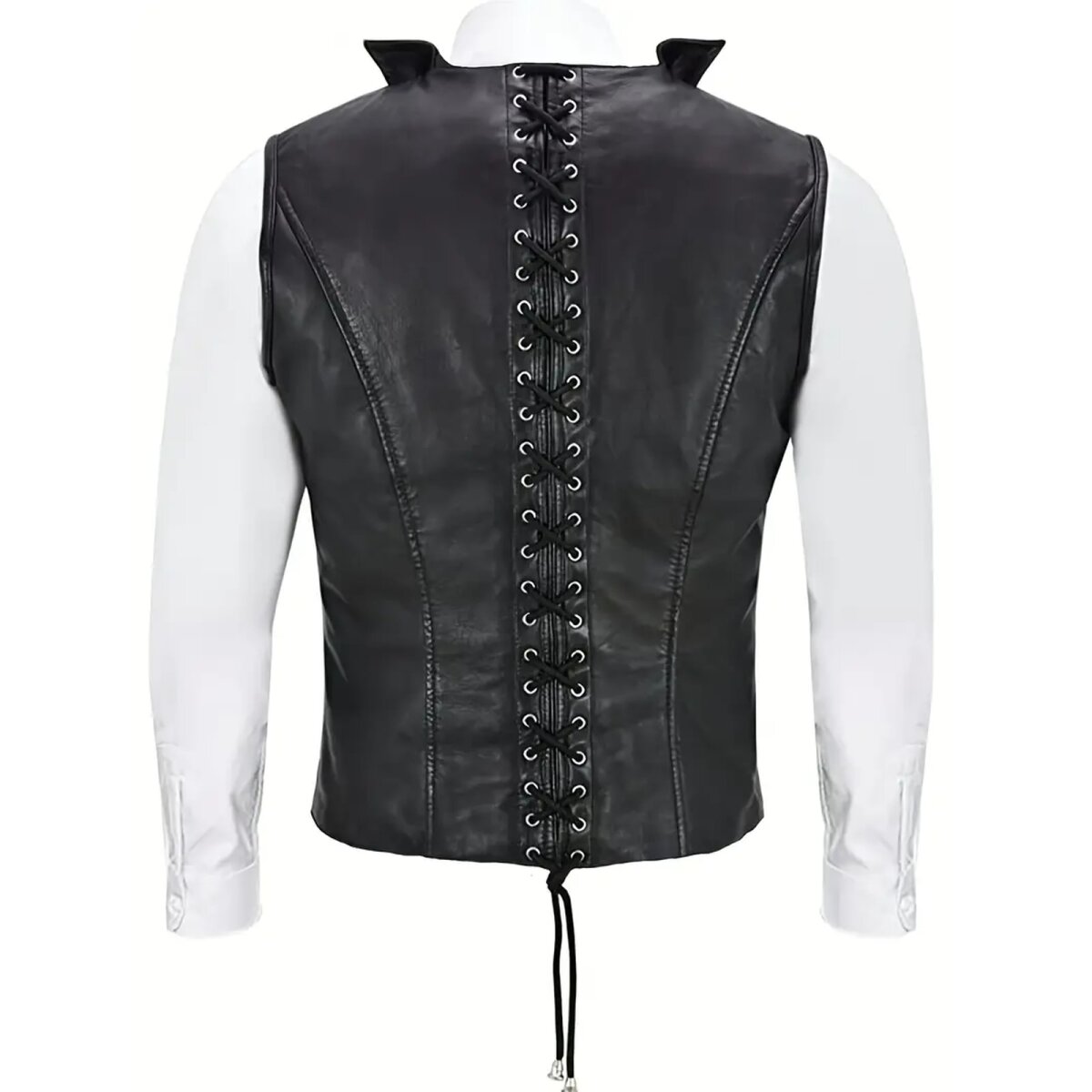 Mit dieser kunstvoll gearbeiteten Kunstlederweste im mittelalterlichen Stil wirst du selbst zur Bühne. Die raffinierte Schnürung am Rücken sorgt nicht nur für perfekten Sitz, sondern macht dich zum Blickfang auf jedem Festival, Konzert oder Mittelaltermarkt.